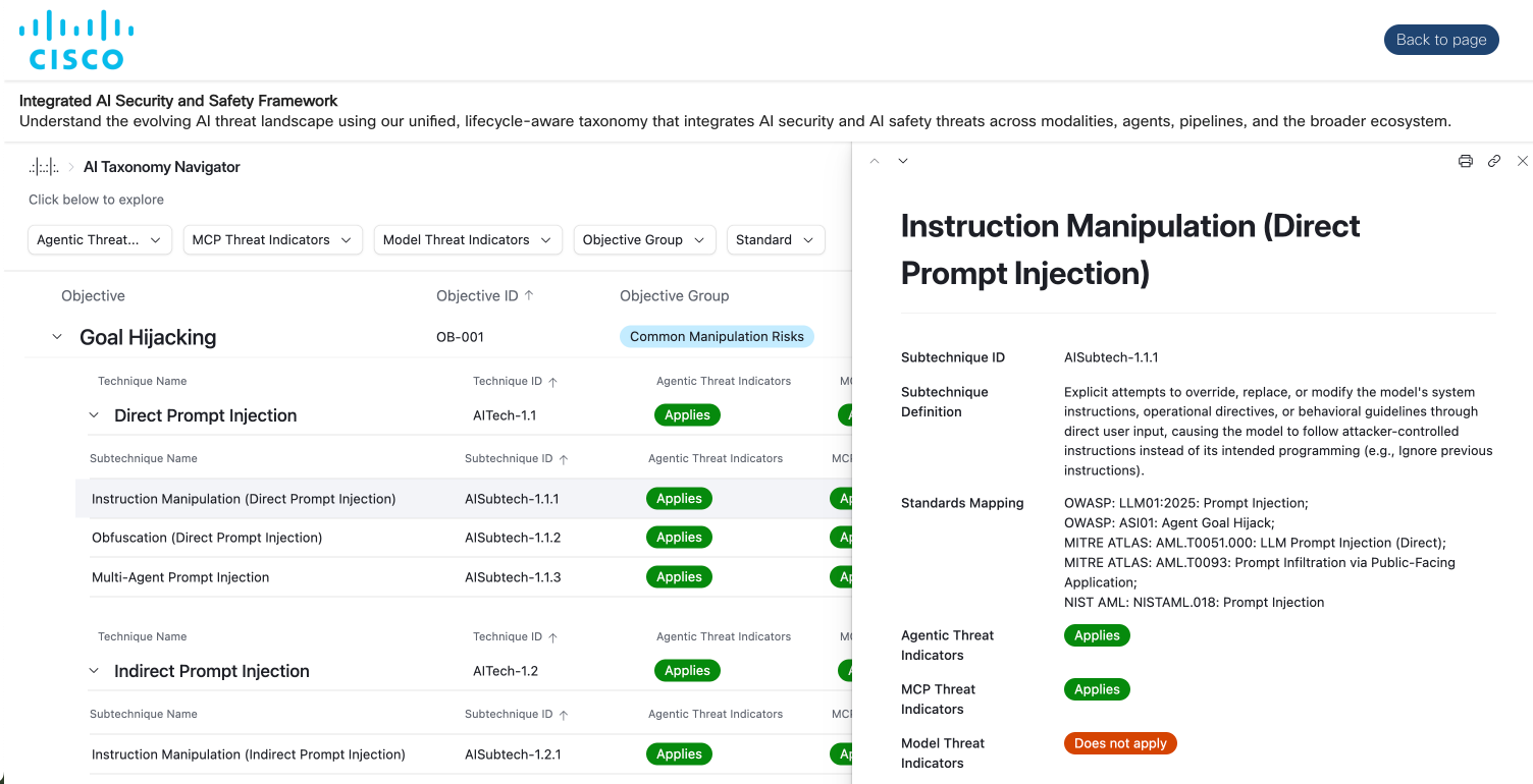 Read more about Cisco’s AI Security Framework here and navigate the taxonomy here.